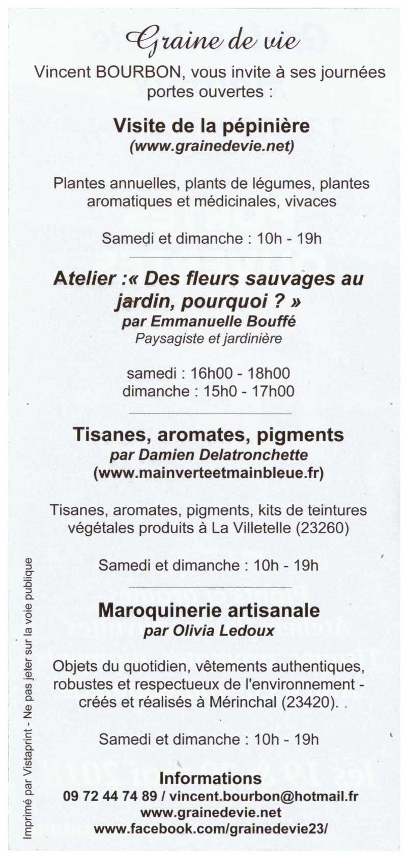 19 & 20 mai 2018 - Journées portes ouvertes - Graine de vie - Dontreix (23)