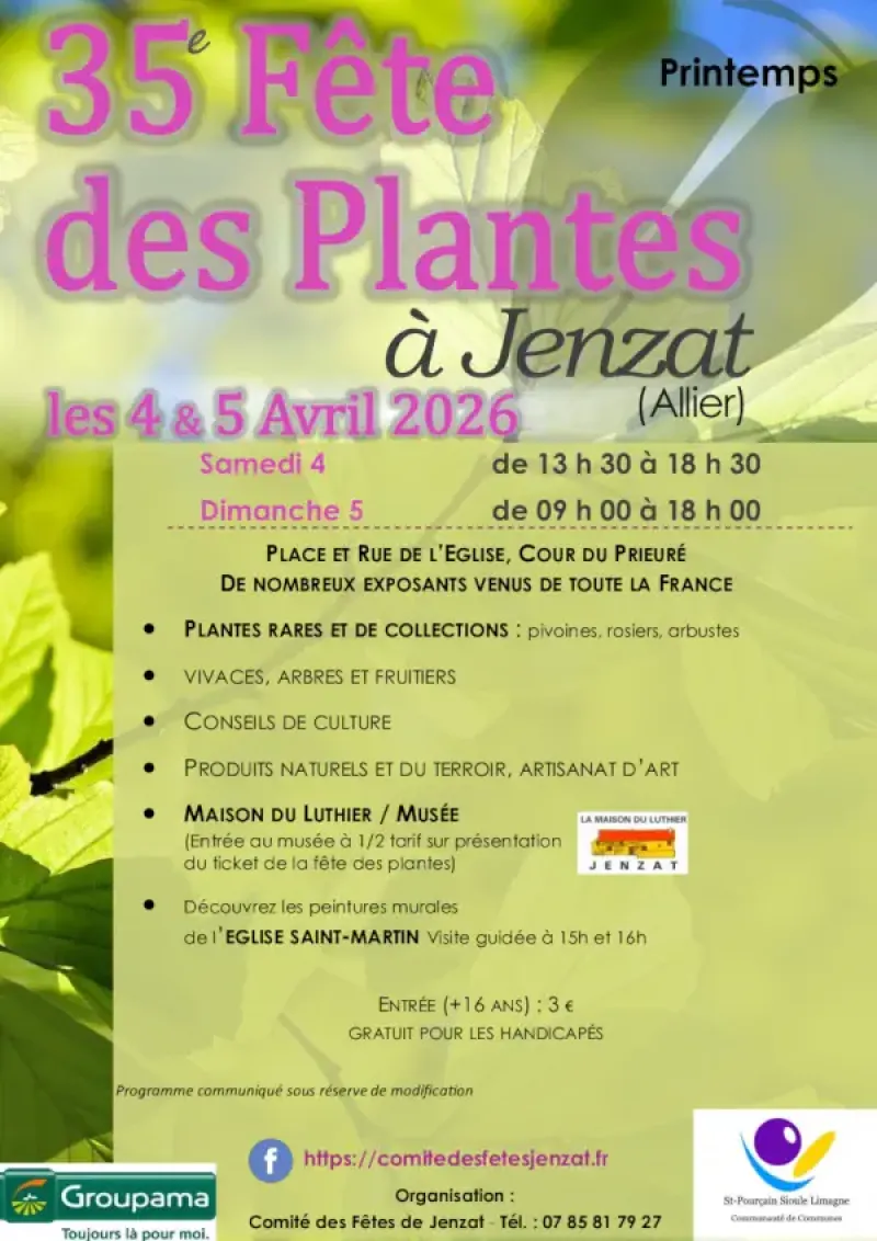 35ème Fête des plantes de Jenzat les Samedi 4 avril 2026 de 13h30 à 18h30 et Dimanche 5 avril de 9h à 18h